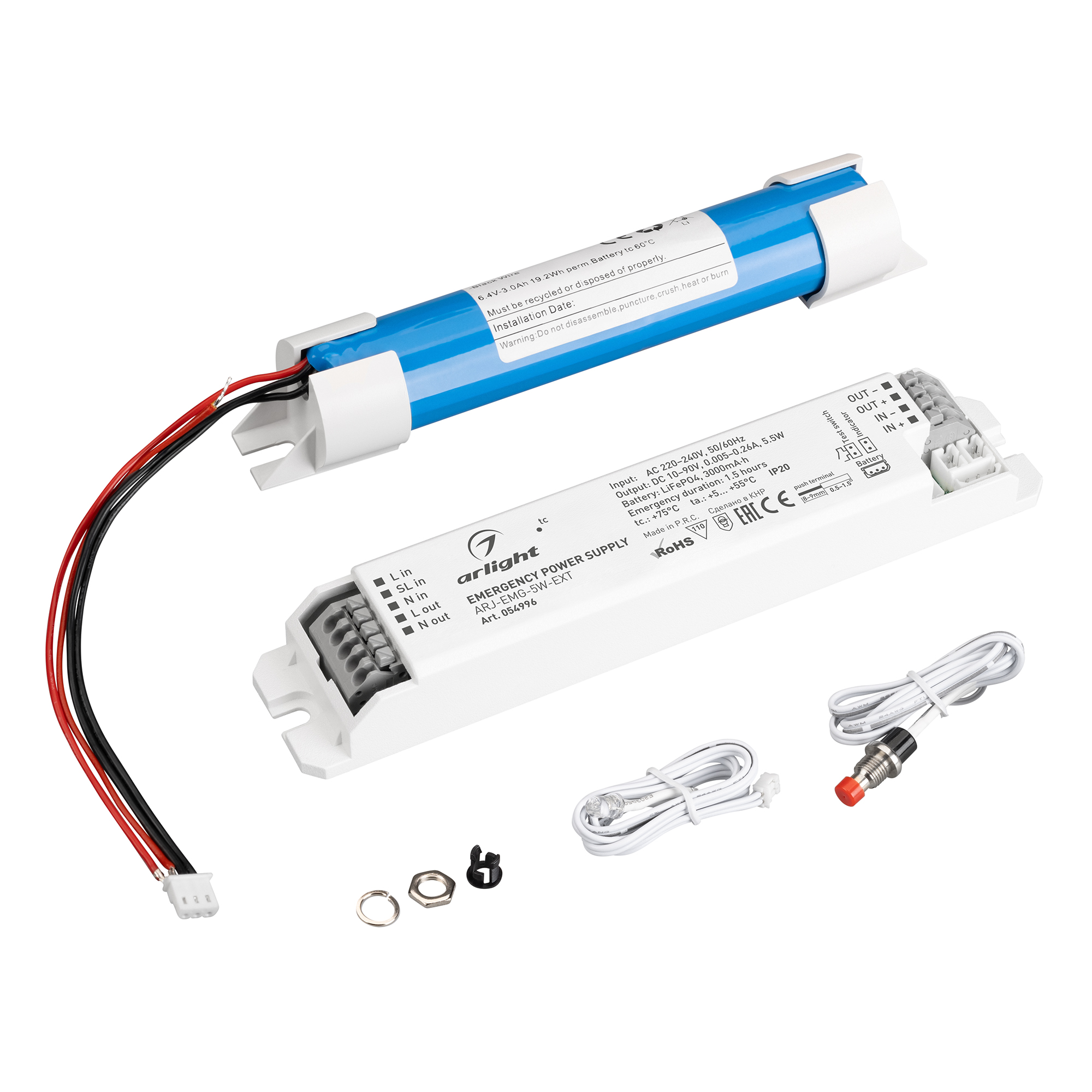 Блок аварийного питания ARJ-EMG-5W-EXT (10-90V, 1.5H, LiFePO4) (Arlight, IP20 Пластик, 3 года) 054996 в Краснодаре
